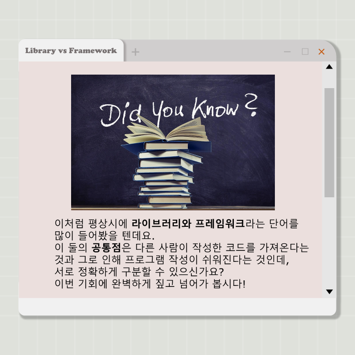 프레임워크와 라이브러리의 특징 및 예시, 그리고 차이점에 대해 알아봅시다!