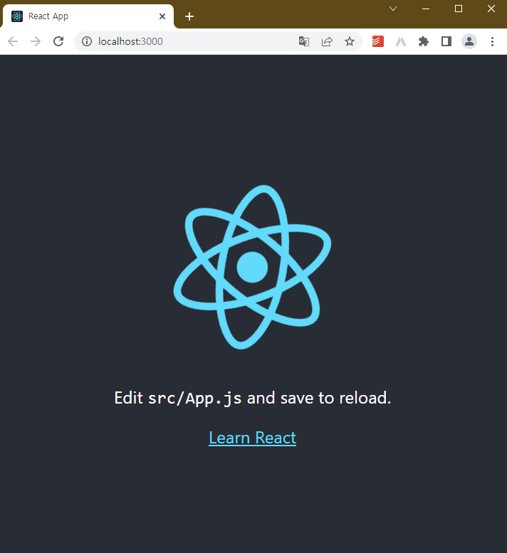 이후 자동으로 아래의 사진과 같은 리액트 웹 페이지가 띄워집니다.
