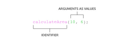 함수 호출문에서 괄호 안에 전달되는 인수는 값 또는 변수의 형태로 기입될 수 있다. 인수가 전달되고 할당되는 순서는 매개변수가 선언되는 순서를 따른다.