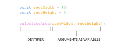 위의 예시에서 calculateArea()는 직사각형의 넓이를 계산하는 함수로, width와 height 두 개의 인수를 받는다. 함수 내부에서는 width와 height를 곱한 값을 출력하는 동작을 수행한다.