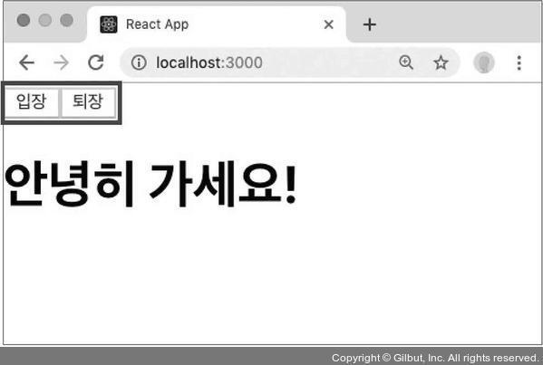 const onClickLeave = () => setMessage(‘안녕히 가세요!’);