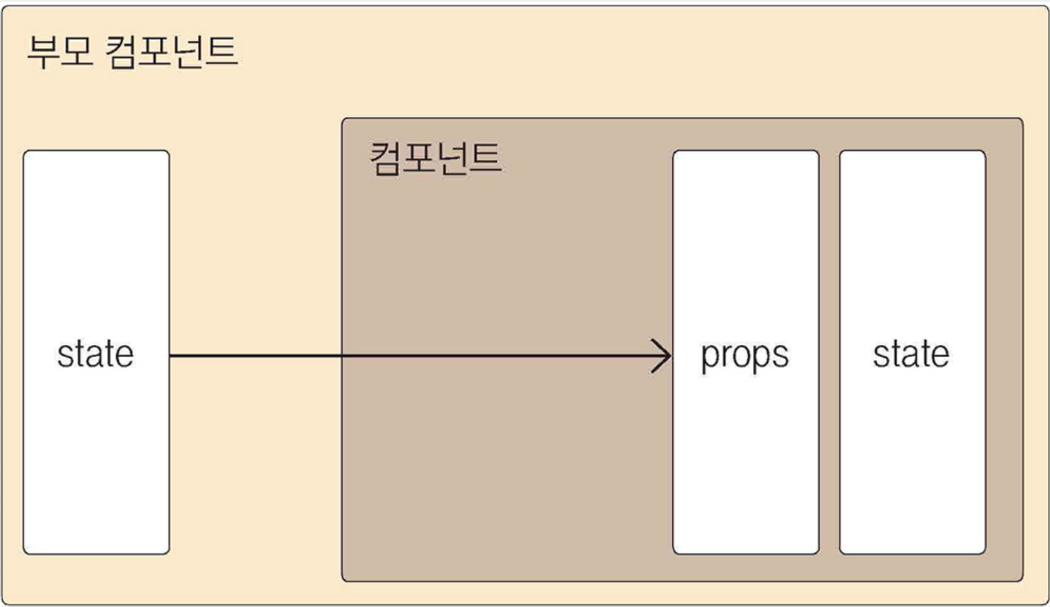 props와 state는 둘 다 컴포넌트에서 사용하며 렌더링할 데이터를 담고 있지만 역할은 매우 다릅니다. props는 부모 컴포넌트가 설정하고, state는 컴포넌트 자체적으로 지닌 값으로 컴포넌트 내부에서 값을 업데이트할 수 있습니다.