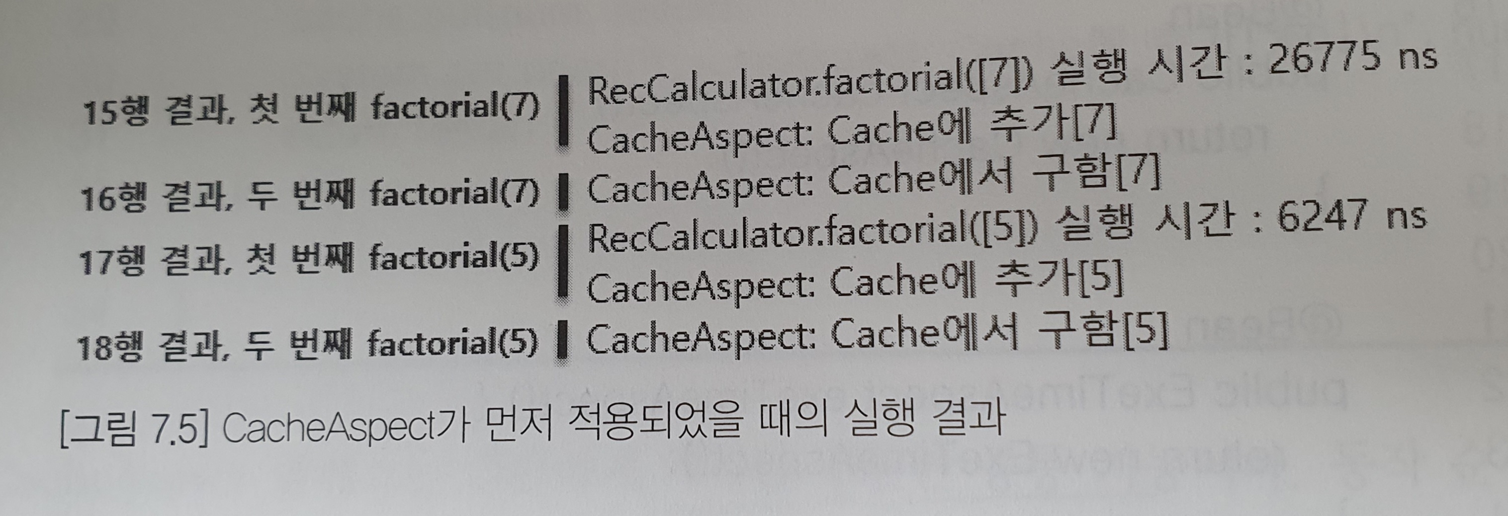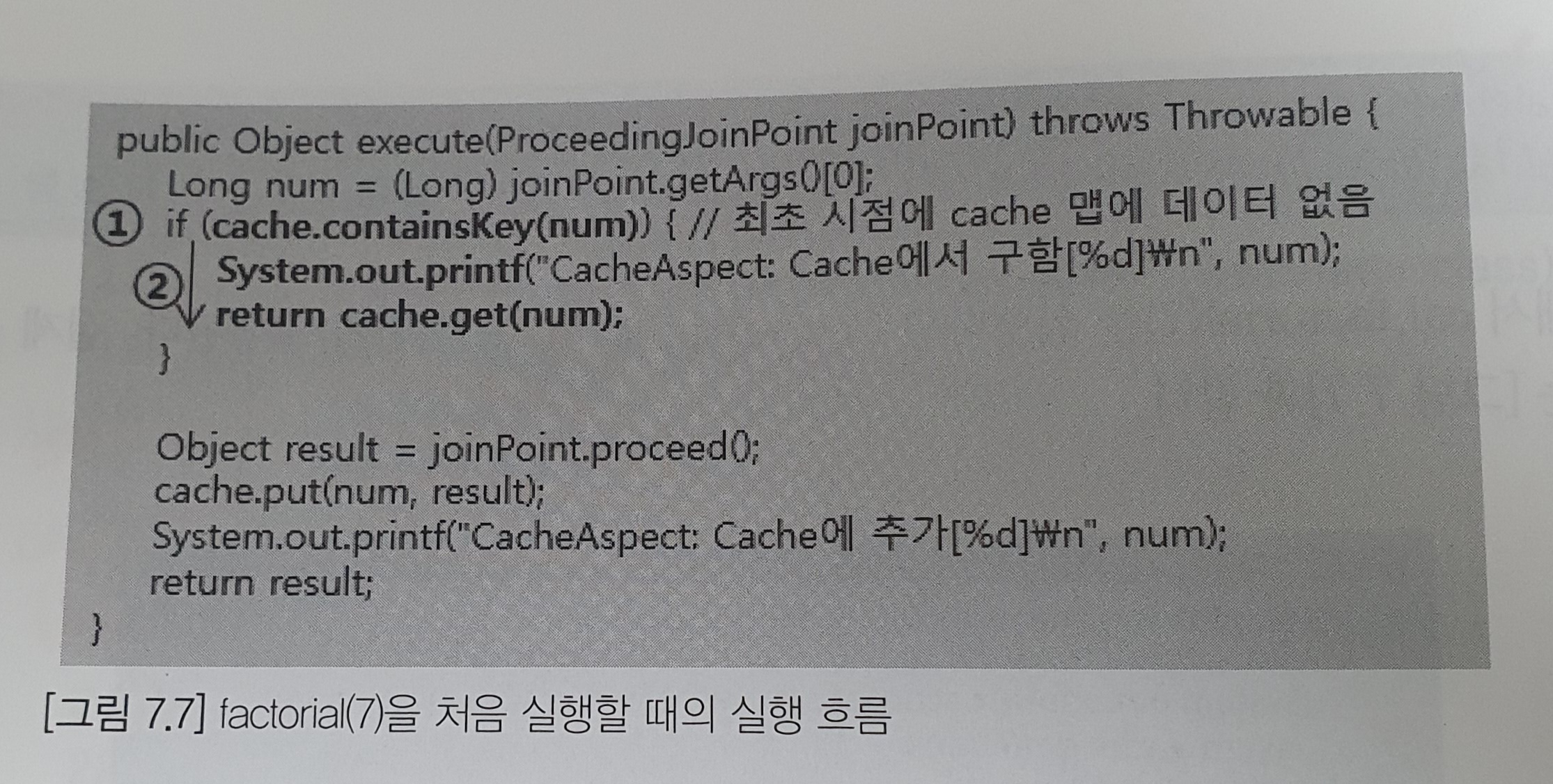 System.out.printf("CacheAspect: Cache에서 구함[%d]\n", num);