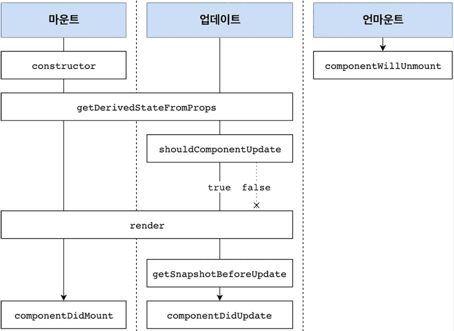 컴포넌트를 처음으로 렌더링할 때 어떤 작업을 처리해야 하거나 컴포넌트를 업데이트하기 전후로 어떤 작업을 처리해야 하는 경우, 또는 불필요한 업데이트를 방지해야 할 때에 컴포넌트의 라이프사이클 메서드를 사용합니다. 라이프사이클 메서드는 클래스형 컴포넌트에서만 사용할 수 있습니다. 함수 컴포넌트에서는 Hooks 기능을 사용하여 비슷한 작업을 처리할 수 있습니다.