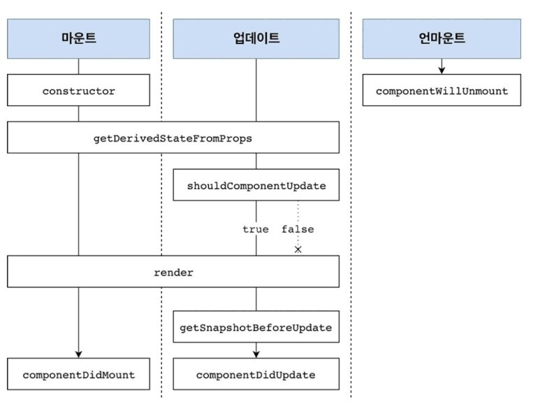 위에서 설명한 바와 같이, 컴포넌트 라이프사이클은 3개의 단계로 나눌 수 있습니다.