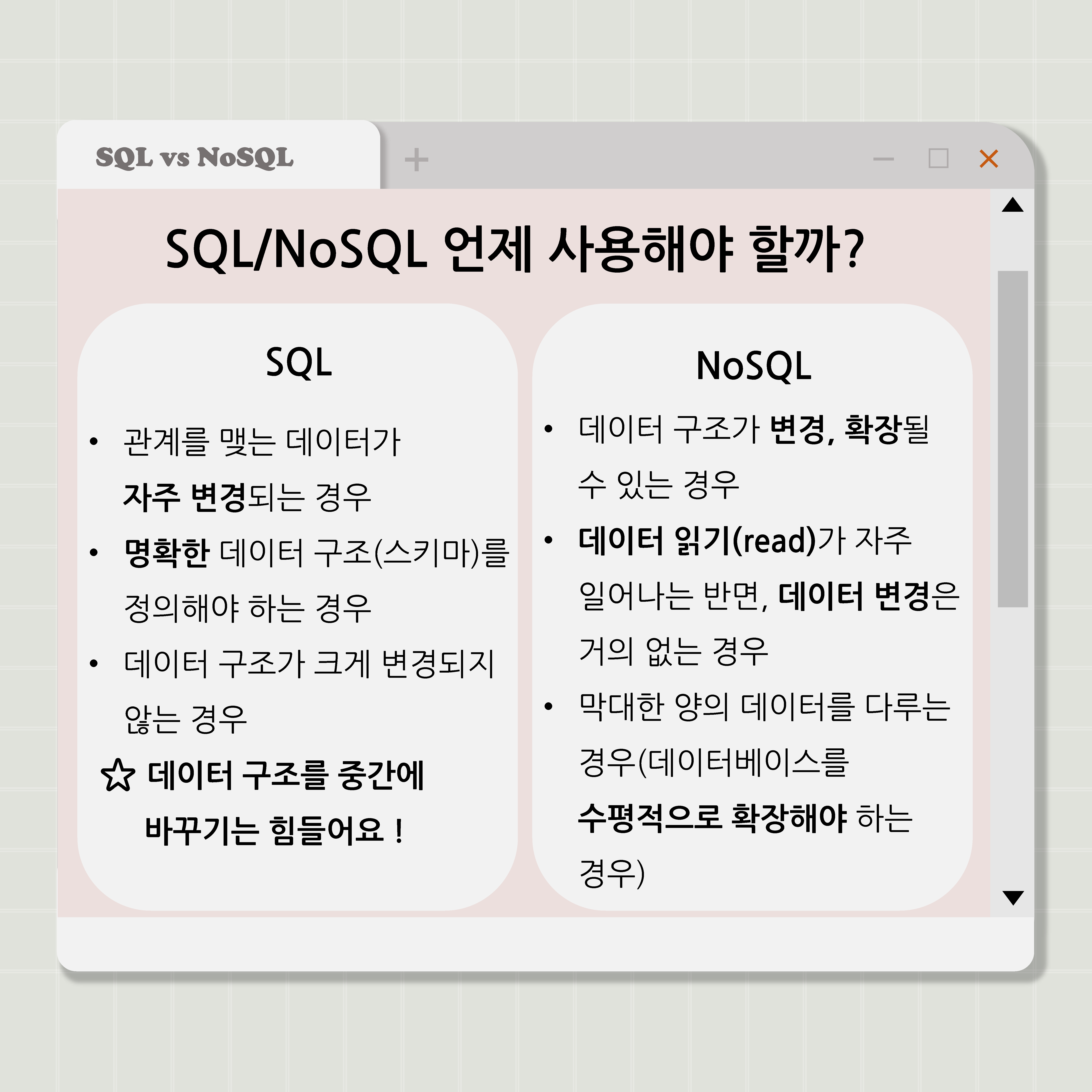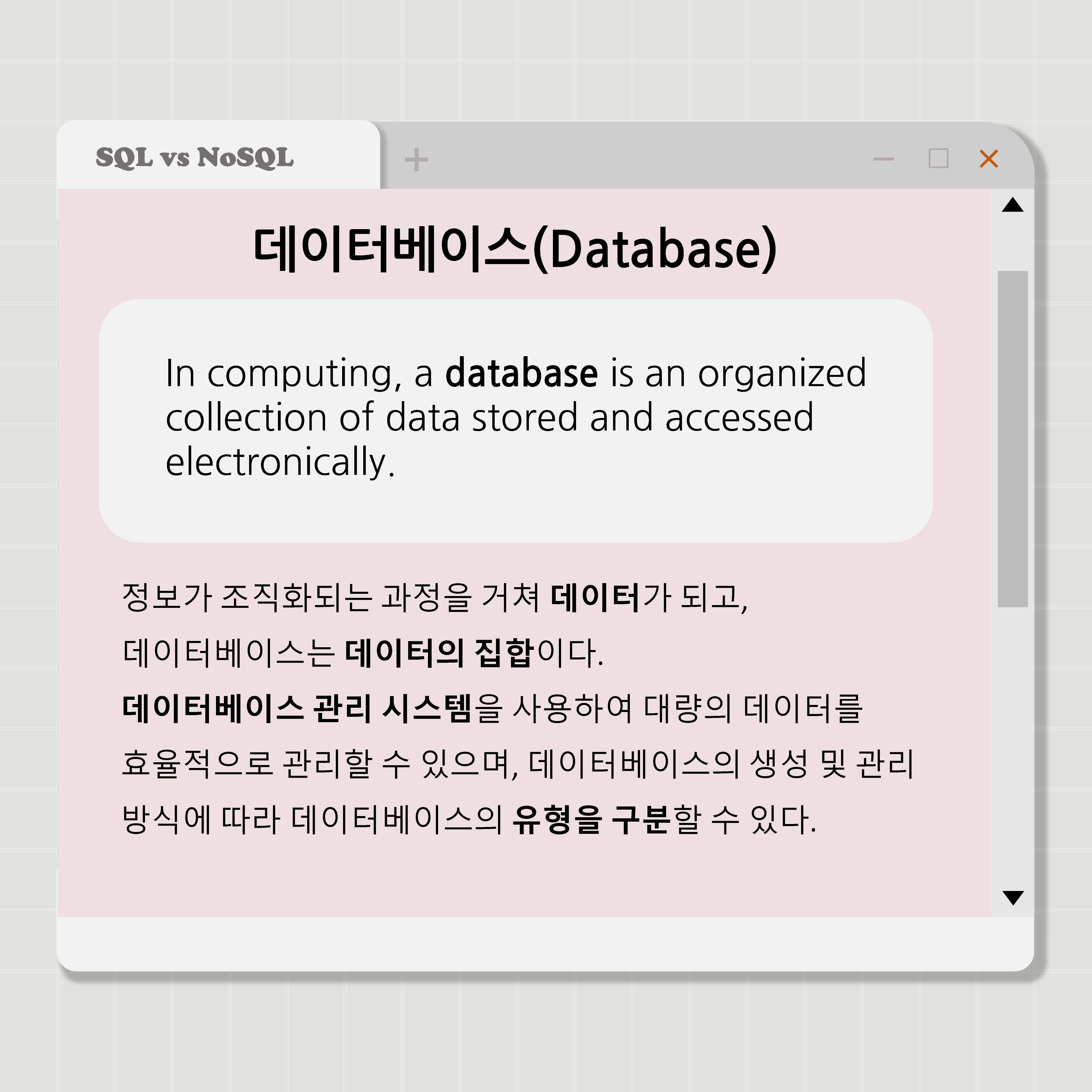 관계형 데이터베이스를 다루는 언어인 SQL과 비관계형 DBMS를 일컫는 NoSQL에 대해 알아봅시다!