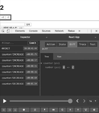 이렇게 코드를 작성하고 +1과 -1 버튼을 눌러서 숫자가 잘 바뀌는지 확인해 보세요. 만약 컴포넌트 성능을 최적화해야 하는 상황이 온다면 useCallback으로 액션을 디스패치하는 함수를 감싸 주는 것이 좋습니다.