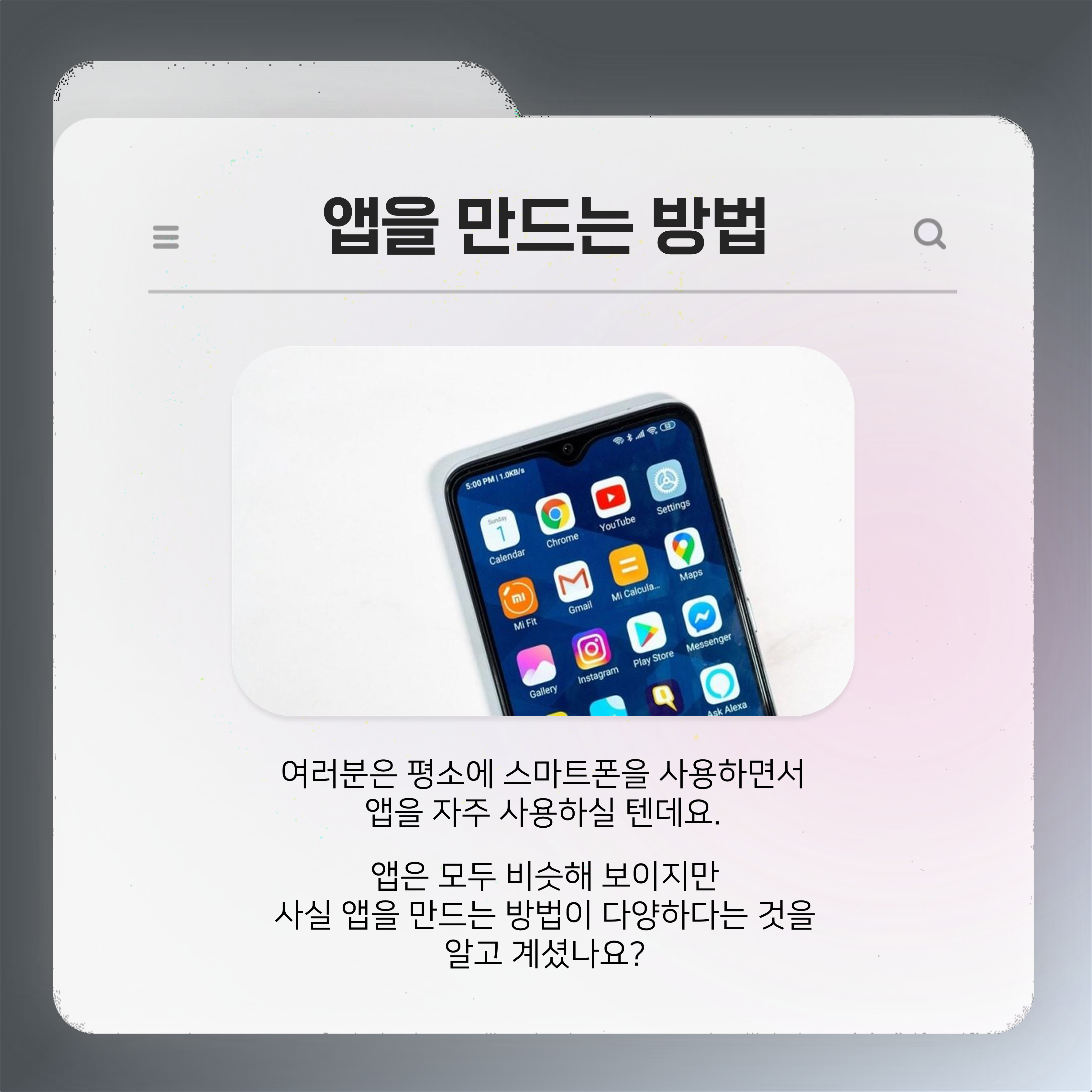 이번 정기 콘텐츠는 Team 새싹이들의 모바일 앱 종류에 대한 이야기인데요,