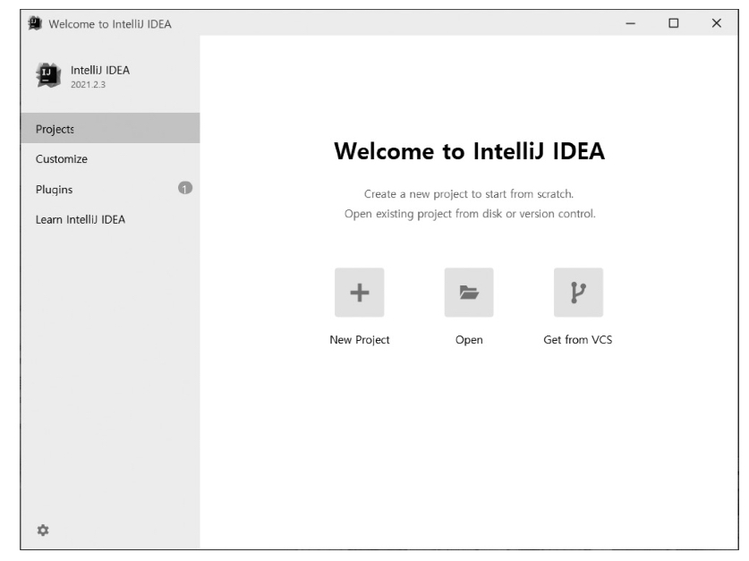 1. 인텔리제이 IDEA를 실행하고 사용자 약관 동의 등의 설정을 완료하고 나면 위와 같은 화면이 나옴