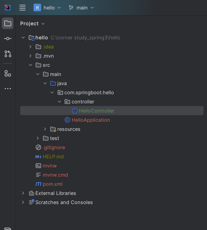 HelloController라는 이름의 컨트롤러 생성