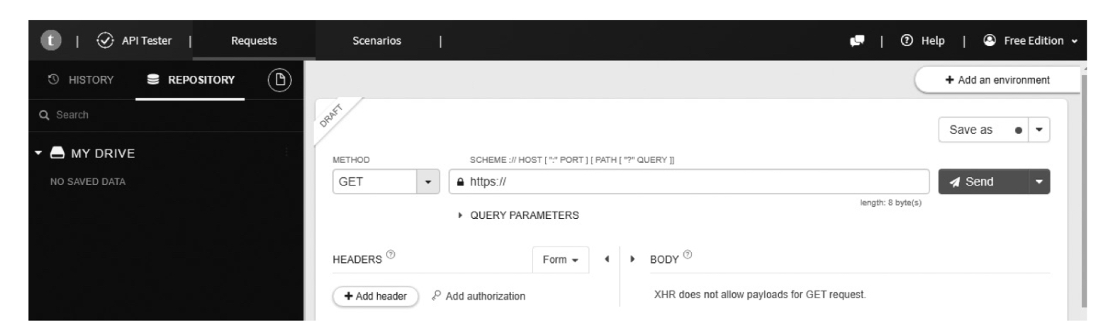 3. 크롬 브라우저에서 Talend API Tester를 실행하면 위의 화면이 표시됨