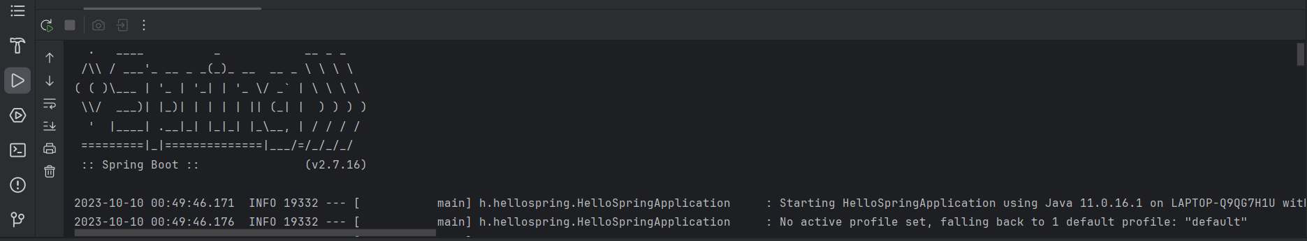 2. 애플리케이션이 정상적으로 실행되면 IDE 하단의 콘솔(Console) 탭에서 아래와 같이 실행 로그가 출력됨