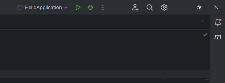 1. 애플리케이션을 실행하는 방법은 인텔리제이 IDEA 우측 상단부에 위치한 실행 버튼을 누르면 애플리케이션이 실행됨