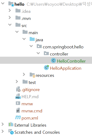 먼저 아래의 위치에 HelloController라는 이름의 컨트롤러를 생성합니다.