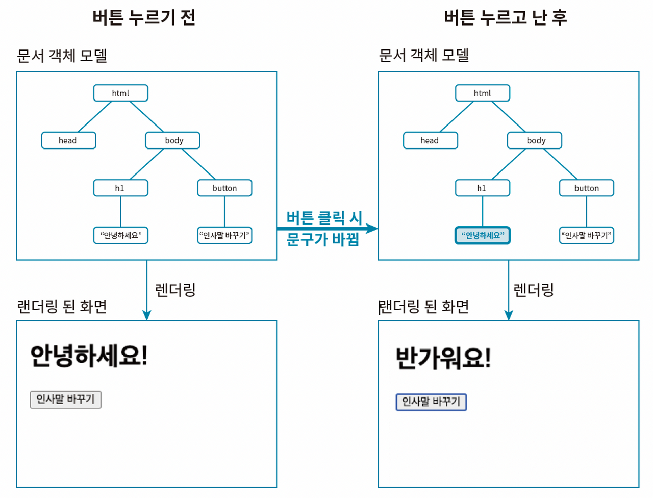 문서 객체 모델 (DOM): HTML 코드를 렌더링 하기 위해 만드는 것