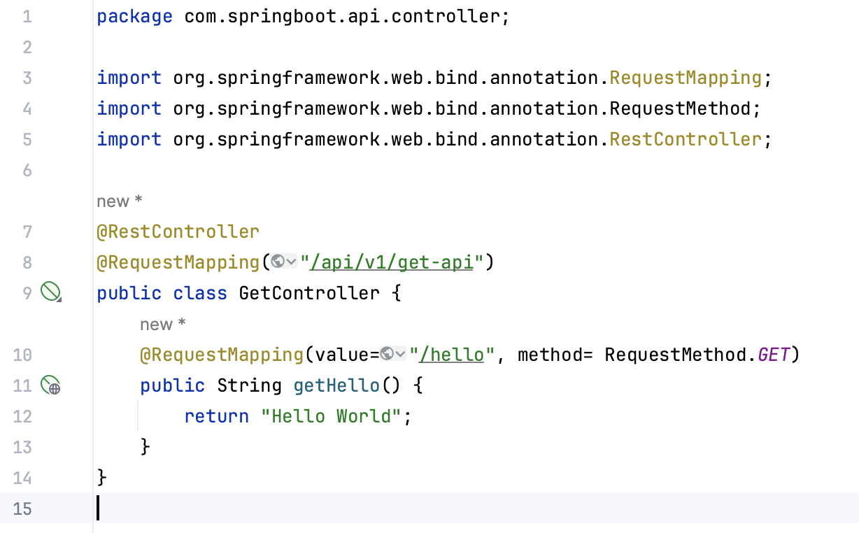 별도의 매개변수 없이 GET 메서드 구현을 위해 아래와 같이 코드를 작성할 수 있습니다.