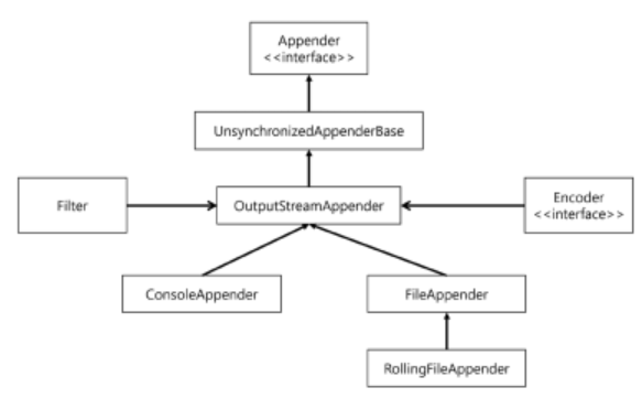 Logback 설정 파일을 이용하면 그림의 각 구현체를 등록해서 로그를 원하는 형식으로 출력할 수 있다.