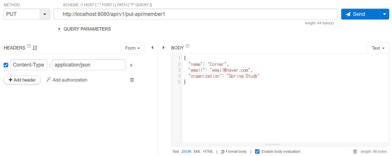 이 메서드는 {중괄호}로 표시된 위치의 값을 받아 요청한다. 실제 요청 시 중괄호는 들어가지 않으며 값만 존재한다. 값을 간단히 전달할 때 주로 사용하는 방법이며, GET 요청에서 많이 사용된다.