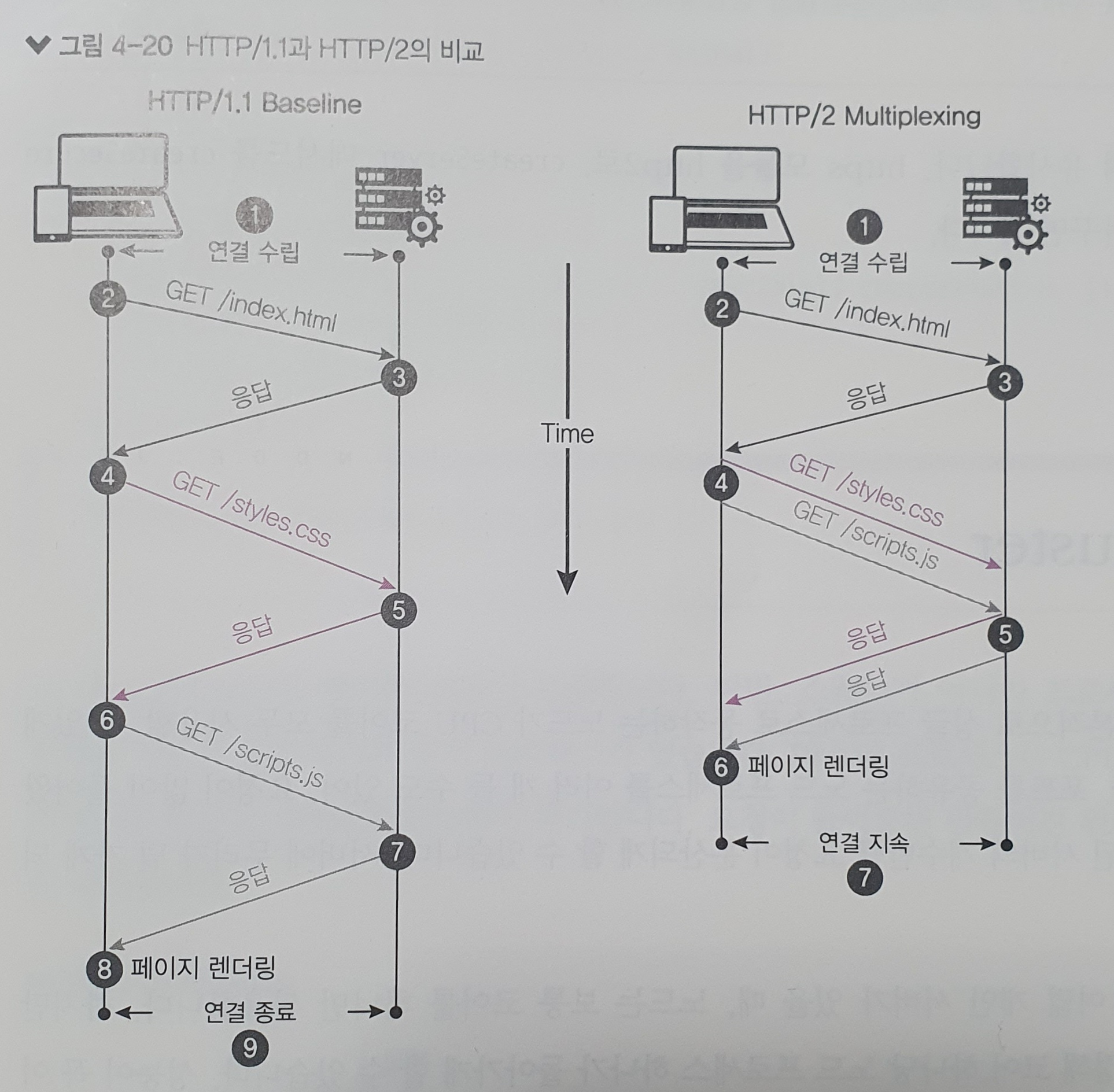 http/2๋ ์์ฒญ ๋ฐ ์๋ต ๋ฐฉ์์ด ๊ธฐ์กด http/1.1๋ณด๋ค ๊ฐ์ ๋์ด ํจ์ฌ ํจ์จ์ ์ผ๋ก ์์ฒญ์ ๋ณด๋ ๋๋ค.
