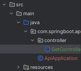 우선, api/src/main/java/com.springboot.api/controller 패키지를 생성하고, GetController 클래스를 생성합니다.