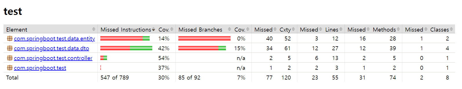 JaCoCo plugin으로 테스트 커버리지를 측정하려면 메이븐의 테스트 단계가 선행되어야 합니다.