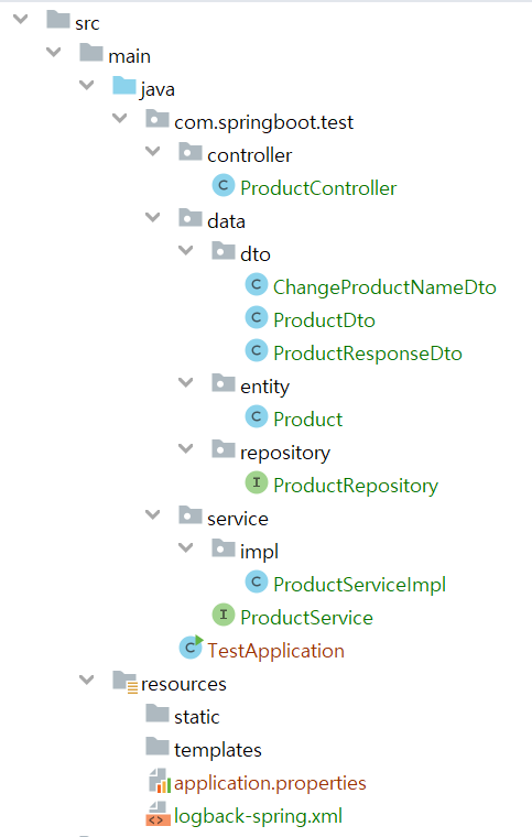 그리고 6장에서 만들었던 프로젝트의 코드 일부를 다음과 같이 가져옵니다. 간단한 코드로 구성되어 있기 때문에 DAO 레이어는 제외하고 서비스 레이어에서 바로 리포지토리를 사용하는 구조로 진행하겠습니다.