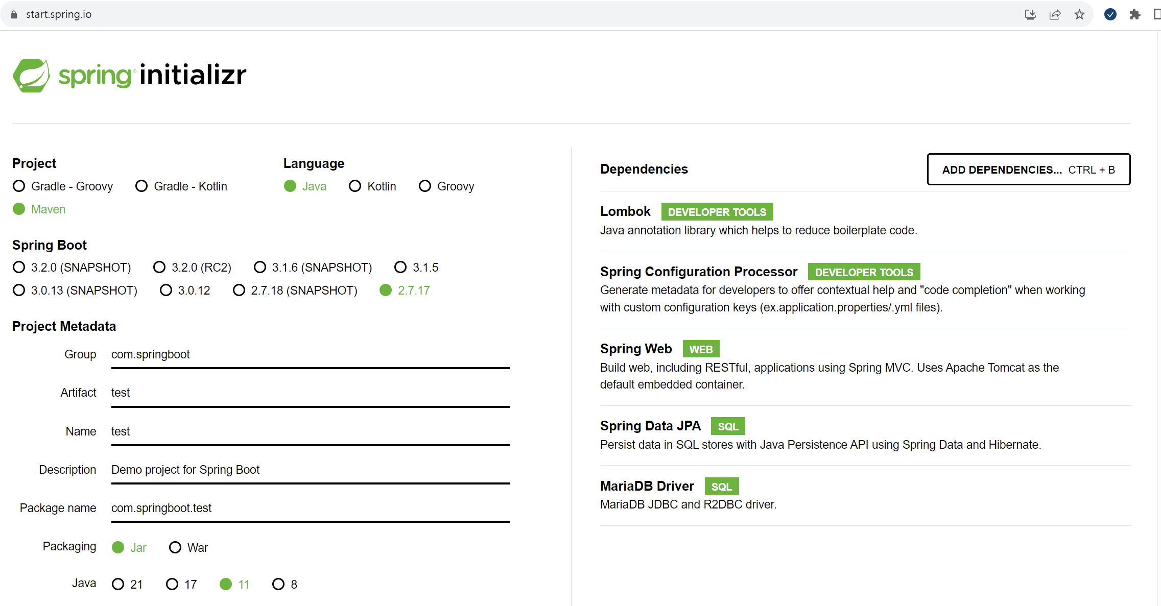 7.4.2 스프링 부트 프로젝트 생성