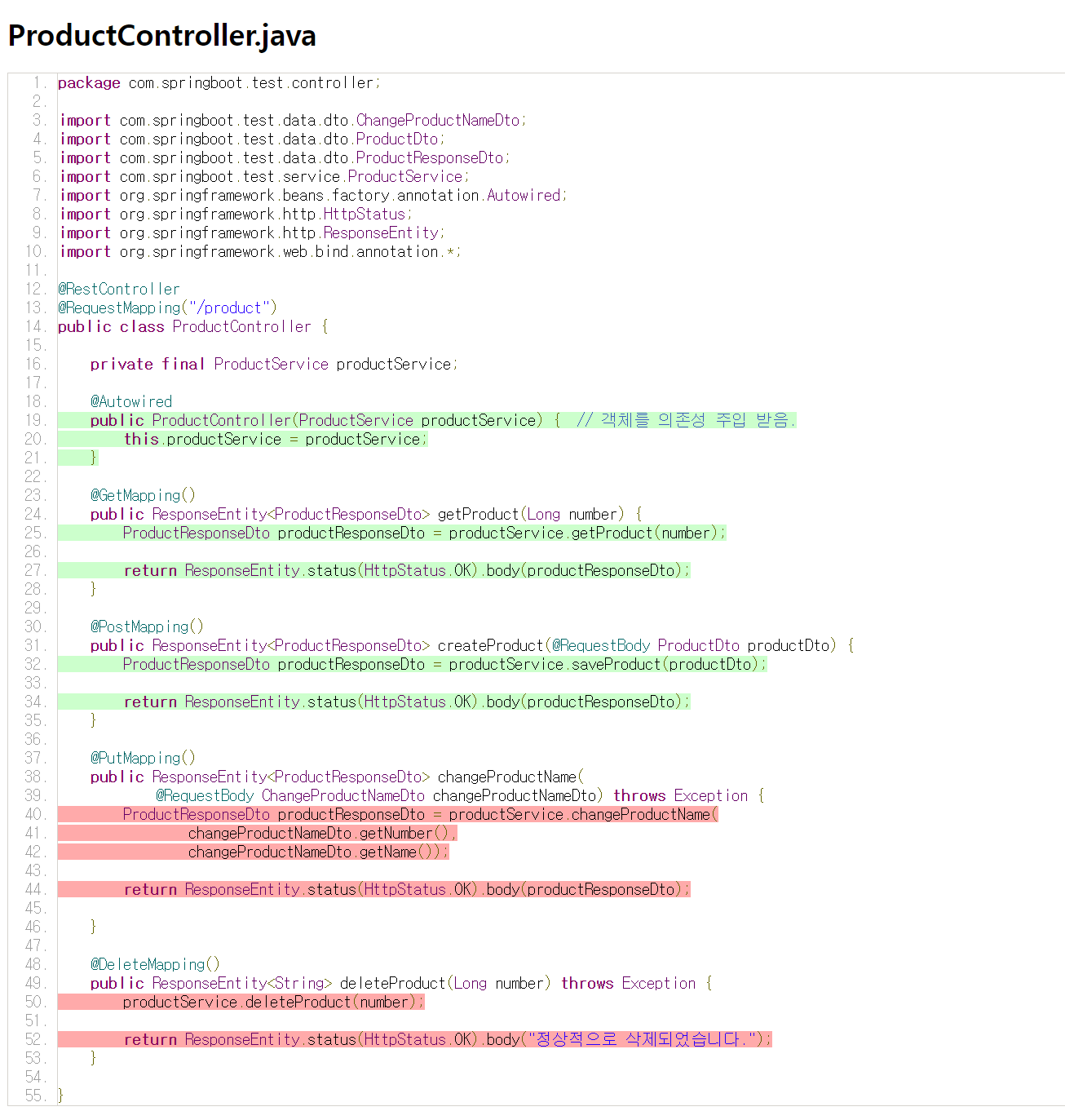 ProductServiceImpl 클래스를 다음과 같이 수정합니다.