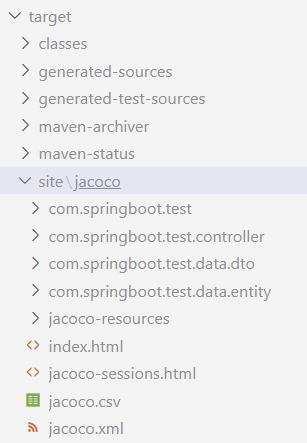 package를 더블클릭해서 빌드를 진행하면 target 폴더 내에 site/jacoco 폴더가 생성됩니다. 만약 정상적으로 동작하지 않는다면 프로젝트 경로에 한글이 없는지 확인해야 합니다.