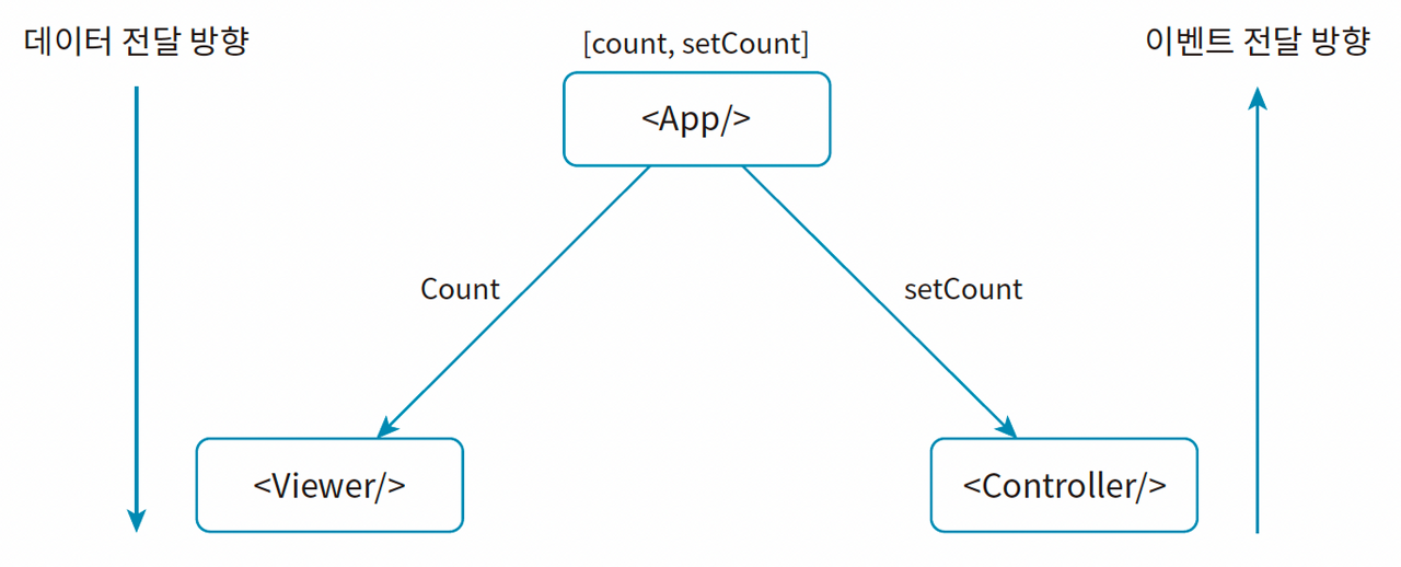 오답1: Viewer 컴포넌트=> Viewer 컴포넌트가 Controller 컴포넌트에 setCount를 전달할 방법이 없다.