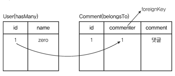 4. 시퀄라이즈에서는 1:N 관계를 (hasMany)라는 메서드로 표현한다.