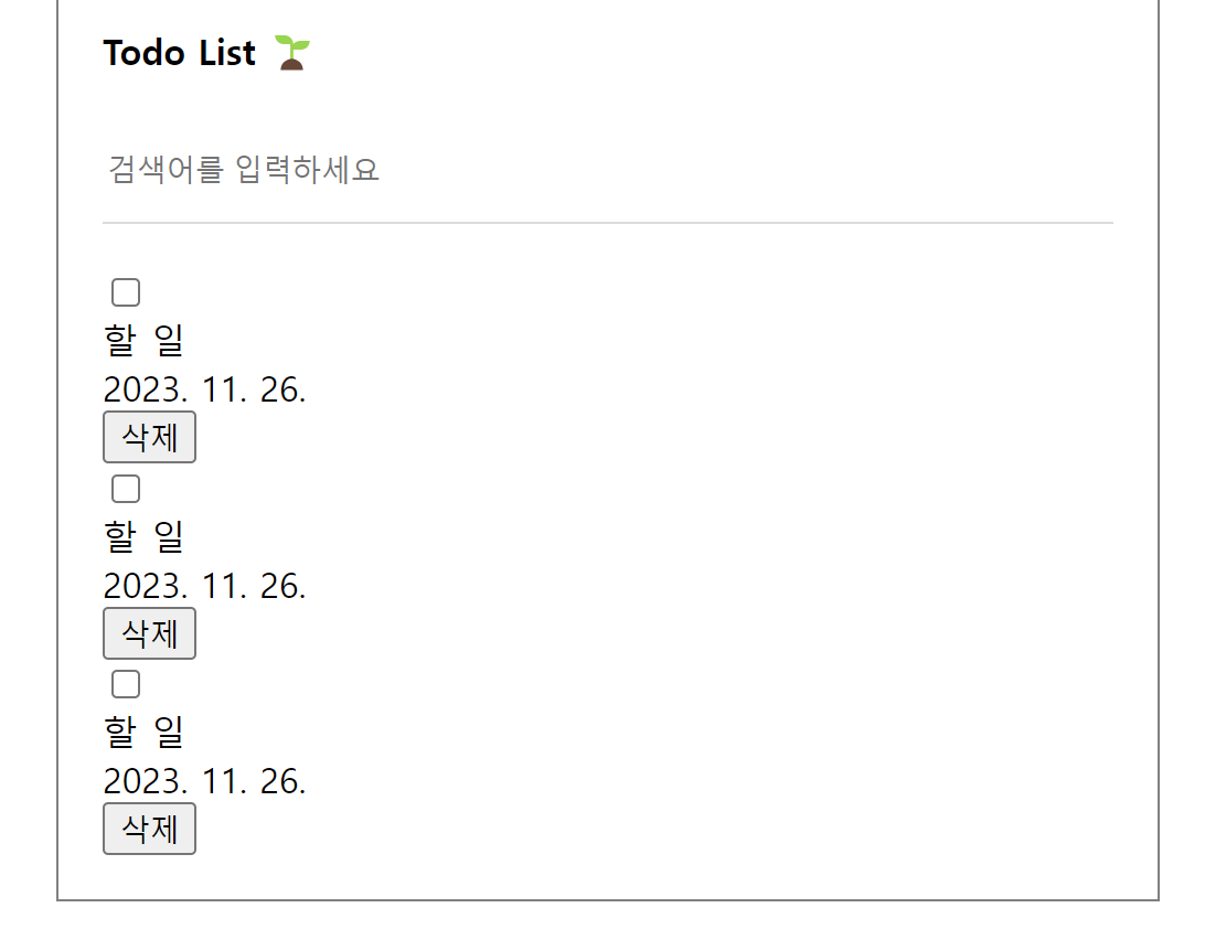 배열의 스프레드 연산자를 활용해 newItem을 포함한 새 배열을 만들어 State 변수 todo를 업데이트한다. 새롭게 추가된 아이템은 항상 배열의 0번 요소가 된다.