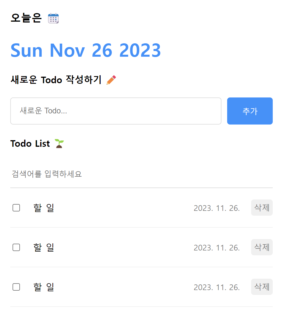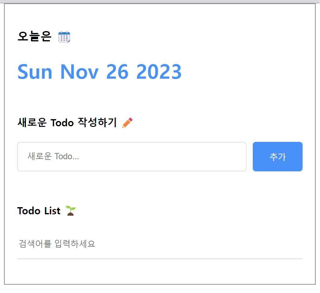 TodoList 컴포넌트는 크게 할 일 아이템을 조회하는 검색 폼과 조회한 할 일 아이템을 목록 형태로 보여주는 리스트 두 부분으로 구성되어 있다. 먼저 상단에 위치할 검색 폼부터 만들어 보자.