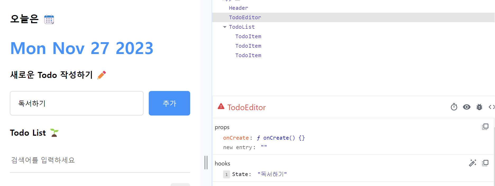 다음으로 TodoEditor 컴포넌트의 할 일 입력 폼에서 사용자가 입력하는 새 할 일 데이터를 저장할 State를 만든다.