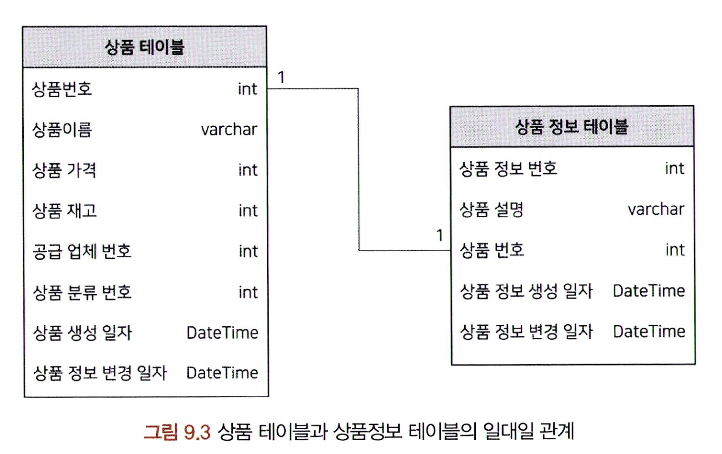 위와 같이 하나의 상품에 하나의 상품정보만 매핑되는 구조를 일대일 관계라고 한다.
