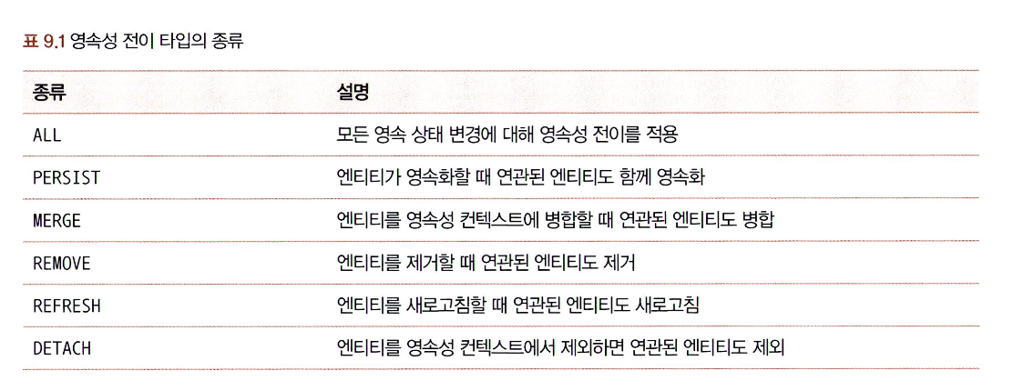 여기서 알 수 있듯이 영속성 전이에 사용되는 타입은 엔티티 생명주기와 연관이 있다.