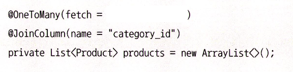 - foreignKey: 외래키를 생성하면서 지정할 제약조건을 설정(unique, nullable, insertable, updatable 등)