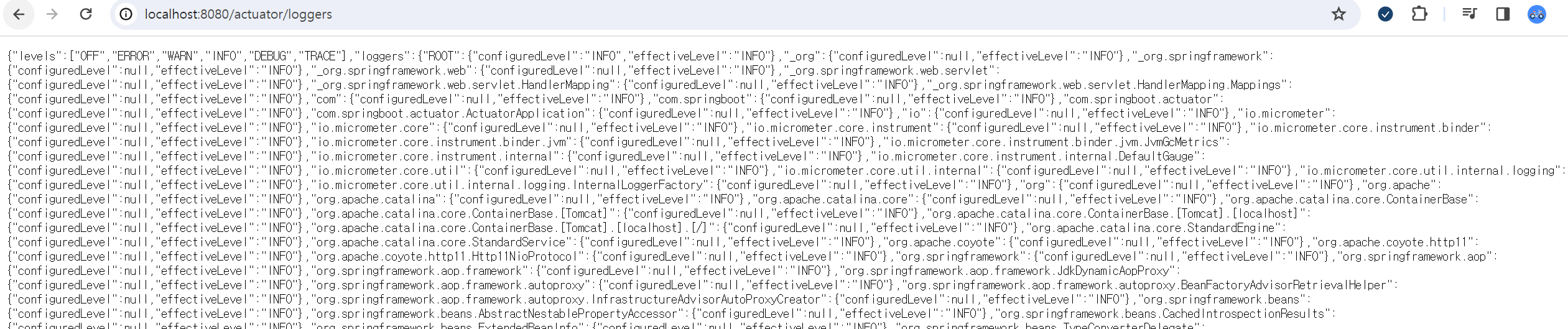 get 메서드로 호출한 결과이며, POST 형식으로 호출하면 로깅 레벨을 변경하는 것도 가능합니다.