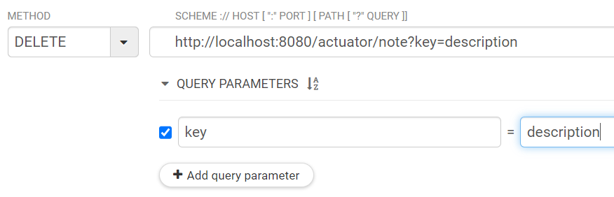 @DeleteOperation이 선언된 메서드를 호출해 보겠습니다. DELETE 호출을 통해 사용할 수 있으며, 현재 구성된 메서드에서는 key 값을 받아 Map 객체에서 해당 값을 삭제하는 작업을 수행합니다.