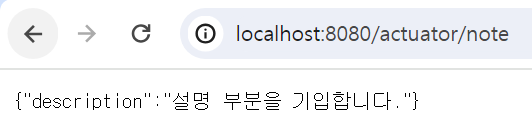 7. 액추에이터의 (/Info) 엔드포인트를 활용하면 가동 중인 애플리케이션의 정보를 볼 수 있습니다.