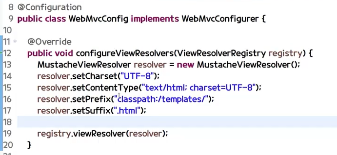 생략할 수 있는데 여기서 뷰리졸버 설정은 templates (prefix), mustache (suffix)입니다.