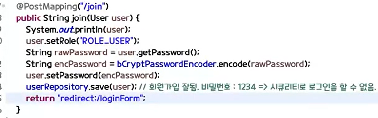 그전에 비밀번호를 암호화하기 위해서 securityConfig를 수정해서 bean을 등록해 주어야 합니다.