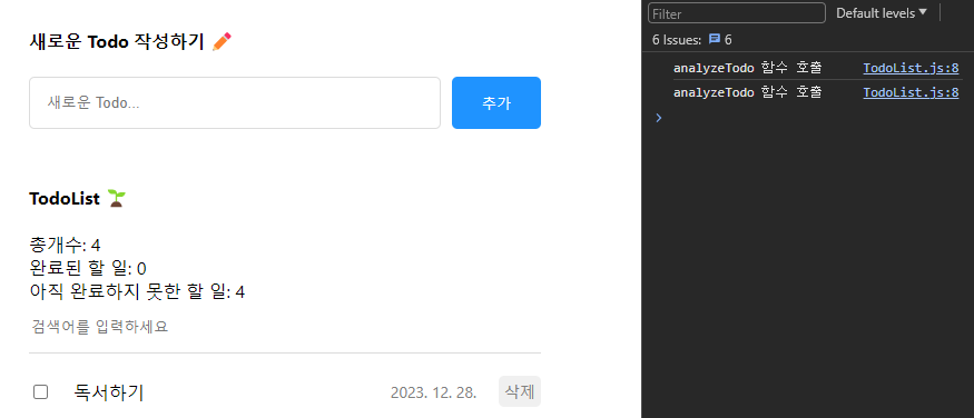 다음 실습을 위해 "analyzeTodo 함수 호출"을 콘솔에 출력하는 코드는 삭제하기