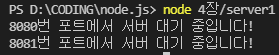 console.log('8082번 포트 서버 대기중');