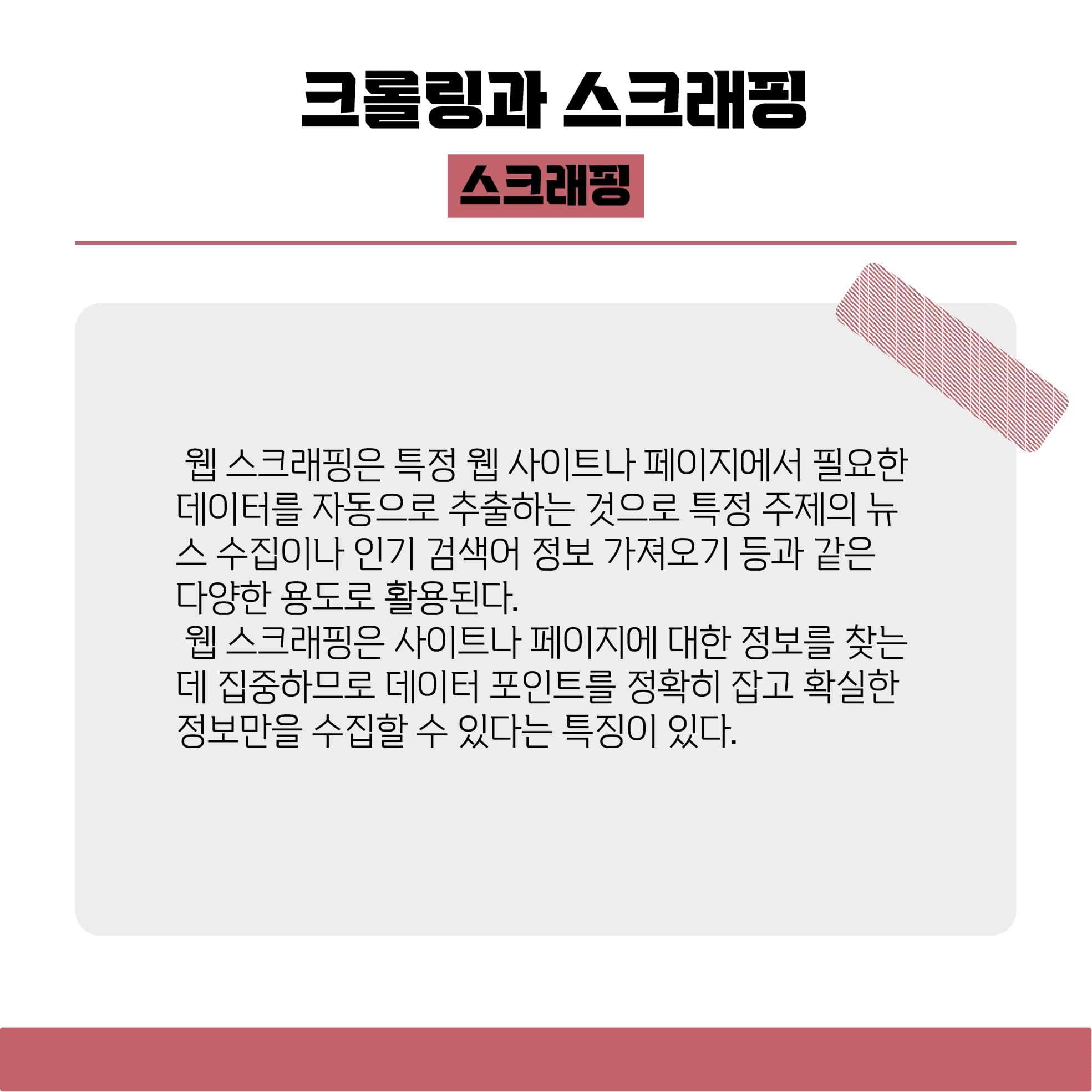 이번 정기 콘텐츠는 Team 꼬맹이코너의 크롤링과 스크래핑에 대한 이야기인데요,