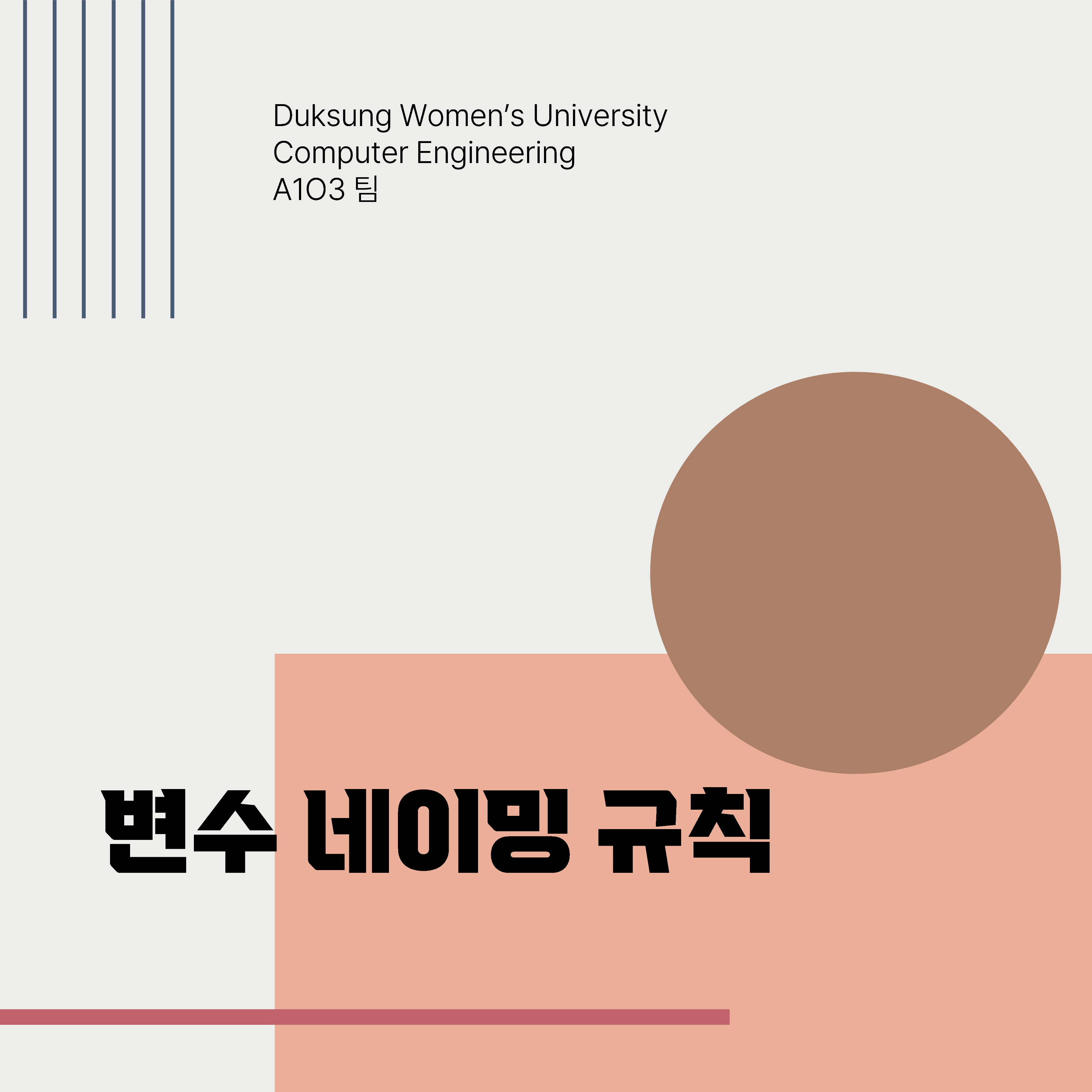 이번 정기 콘텐츠는 Team A103의 변수 네이밍 규칙에 대한 이야기인데요,