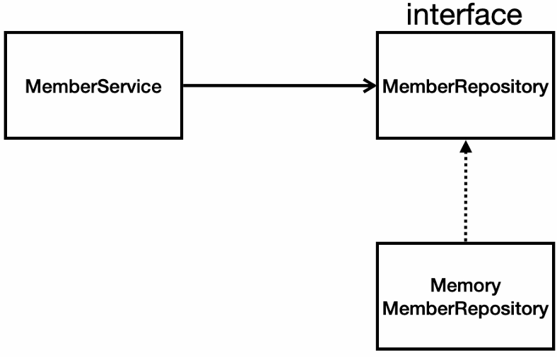 답 : 왼쪽에서부터 MemberService -> MemberRepository -> MemberMemoryRepository