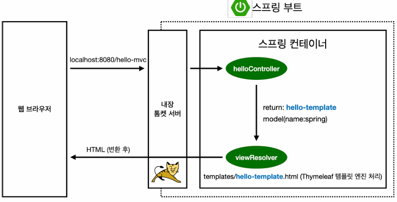 -> 스프링 백엔드에서 데이터를 처리하거나 가지고 왔다면, 이 데이터를 View의 영역으로 전달을 해야 한다. 이때 View를 어떤 것을 사용할지 자유롭게 설정을 할 수 있는데 이 설정 역할을 하는 것이 View Resolver