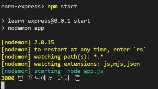 nodemon app은 app.js를 nodemon으로 실행한다는 뜻이다.