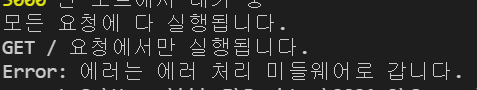 Error: 에러는 에러 처리 미들웨어로 갑니다.